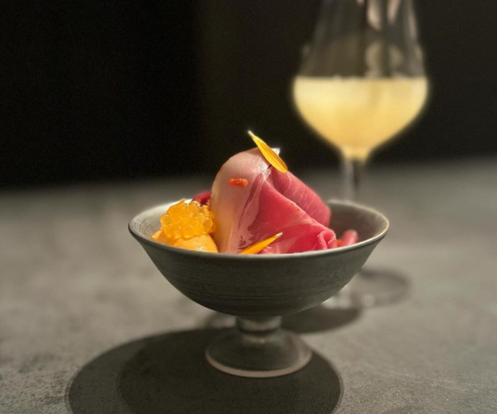 アルコールのペアリングは二ヶ月ごとに変わるコース料理に合わせて、世界中のワインから最適な物を選びます。時には、日本酒や、世界各国のお酒、カクテルを使う事も。さらに、ノンアルコールのペアリングは料理人の視点から考える自由な発想で、料理に合わせてオリジナルの一杯を。